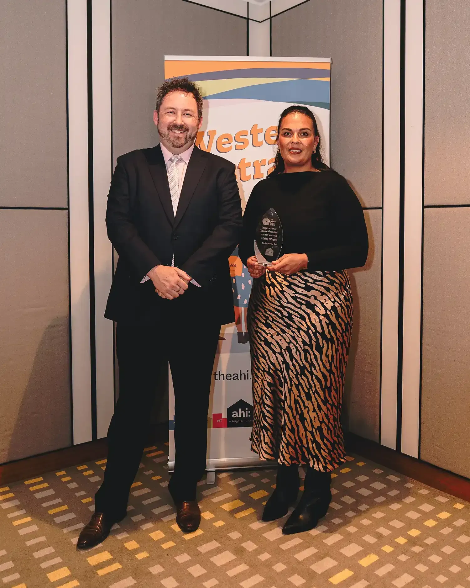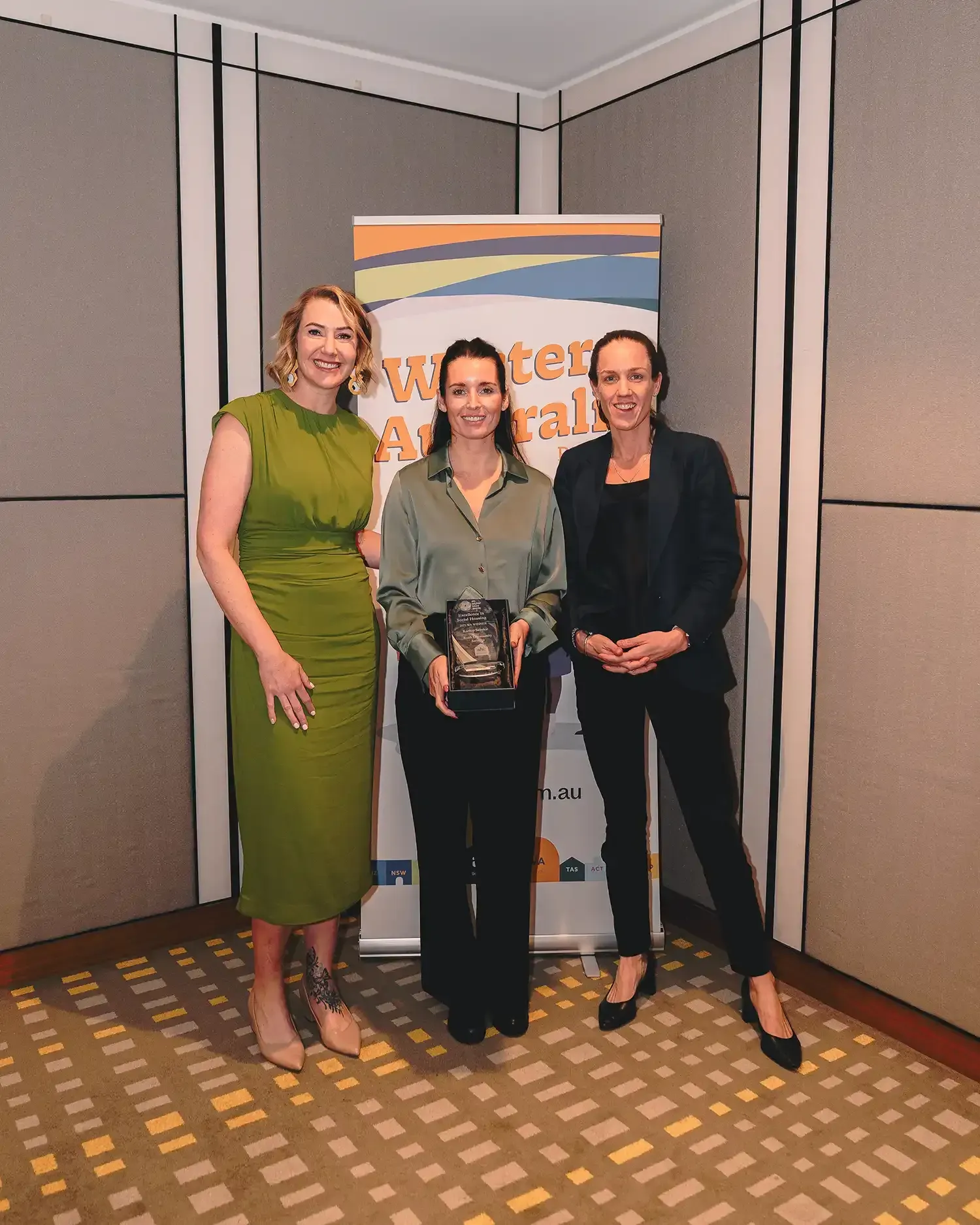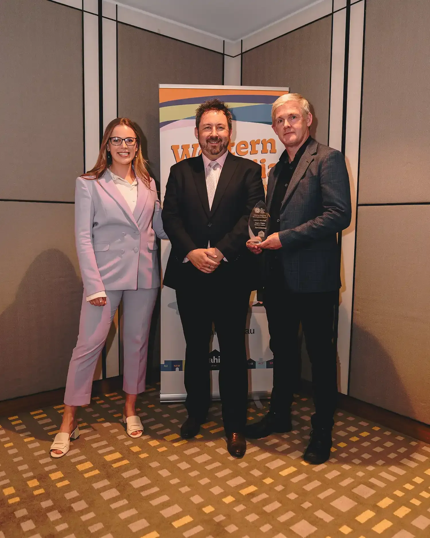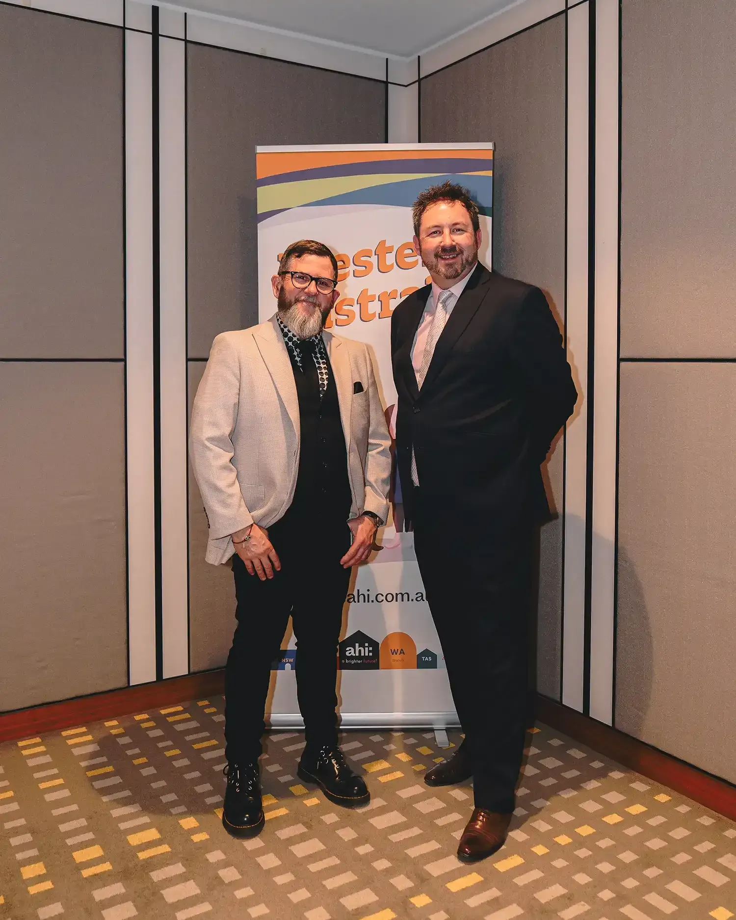 Coming together for the awards in Perth, AHI President Sean Kelly and WA Director Jess Karlsson, together with CEO Harry Smith, we celebrated inspiration, excellence and innovation across the social and affordable housing sector.