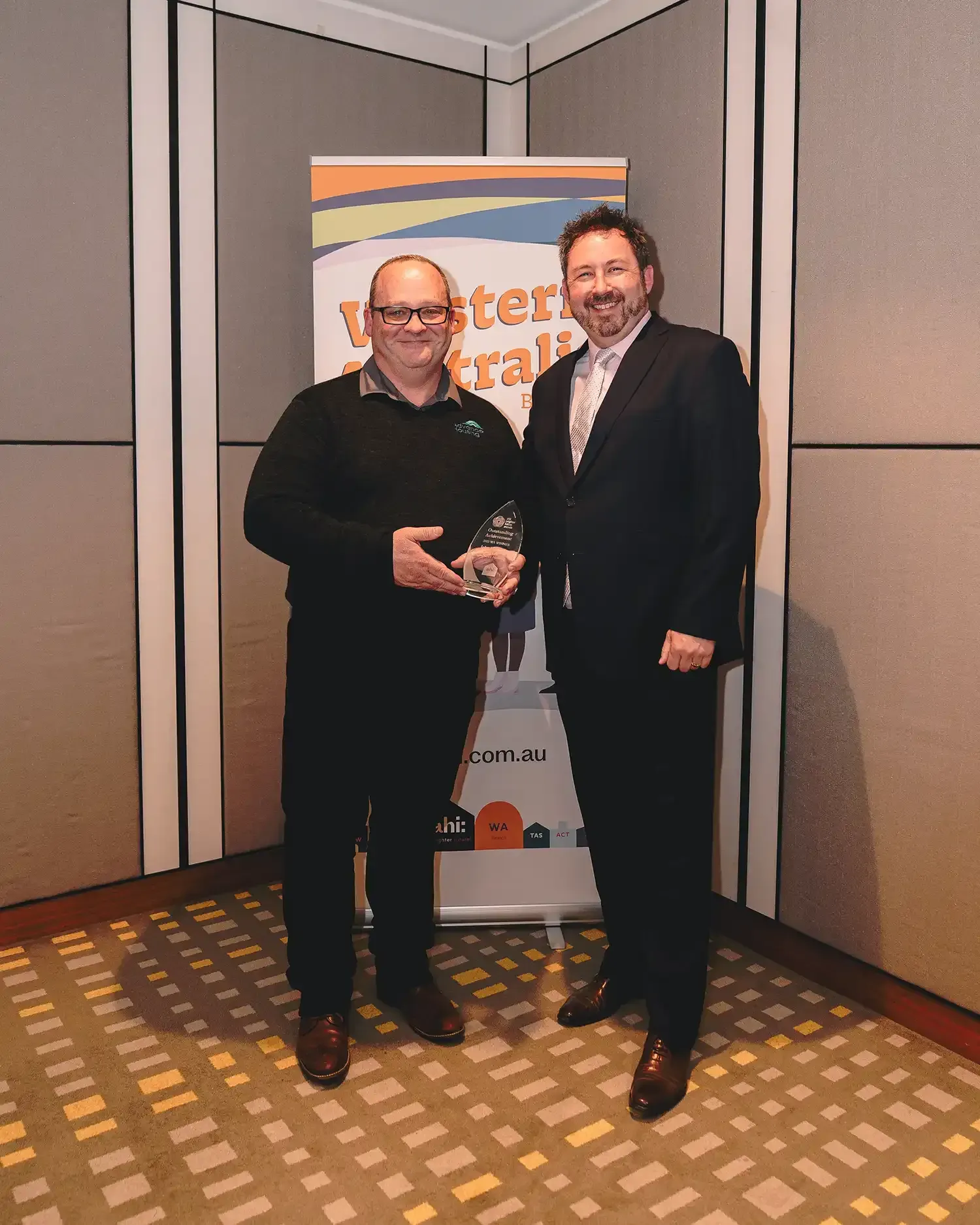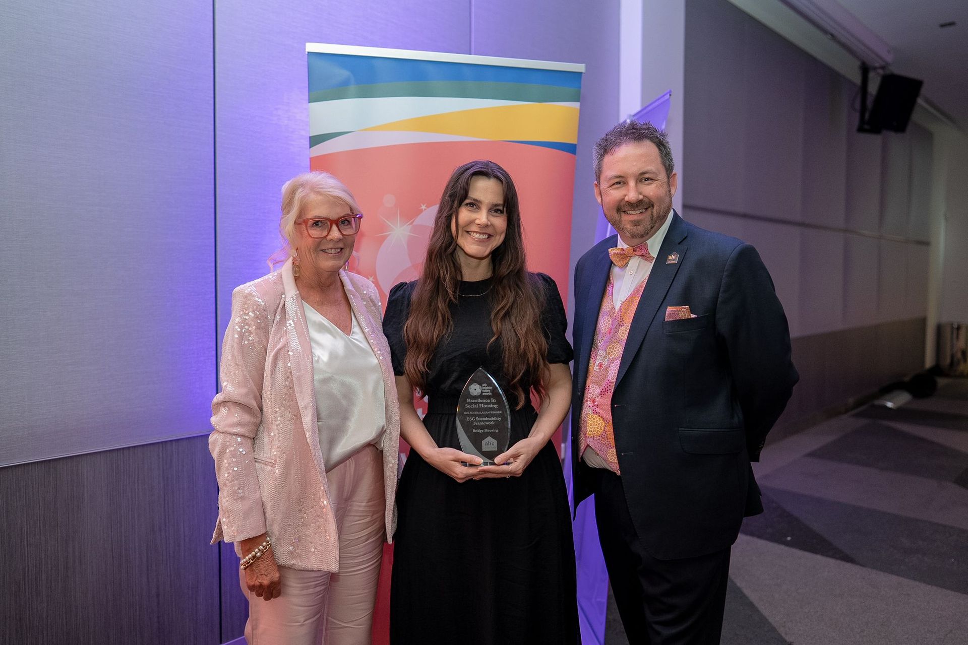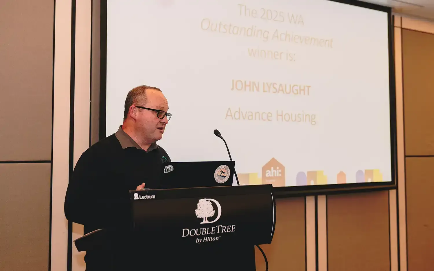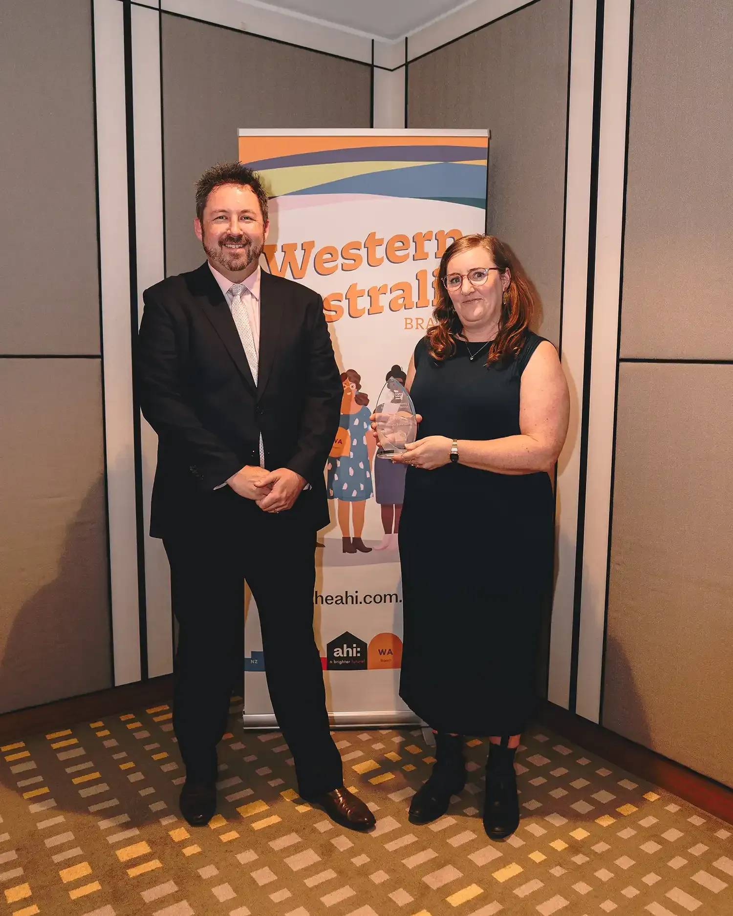 Coming together for the awards in Perth, AHI President Sean Kelly and WA Director Jess Karlsson, together with CEO Harry Smith, we celebrated inspiration, excellence and innovation across the social and affordable housing sector.